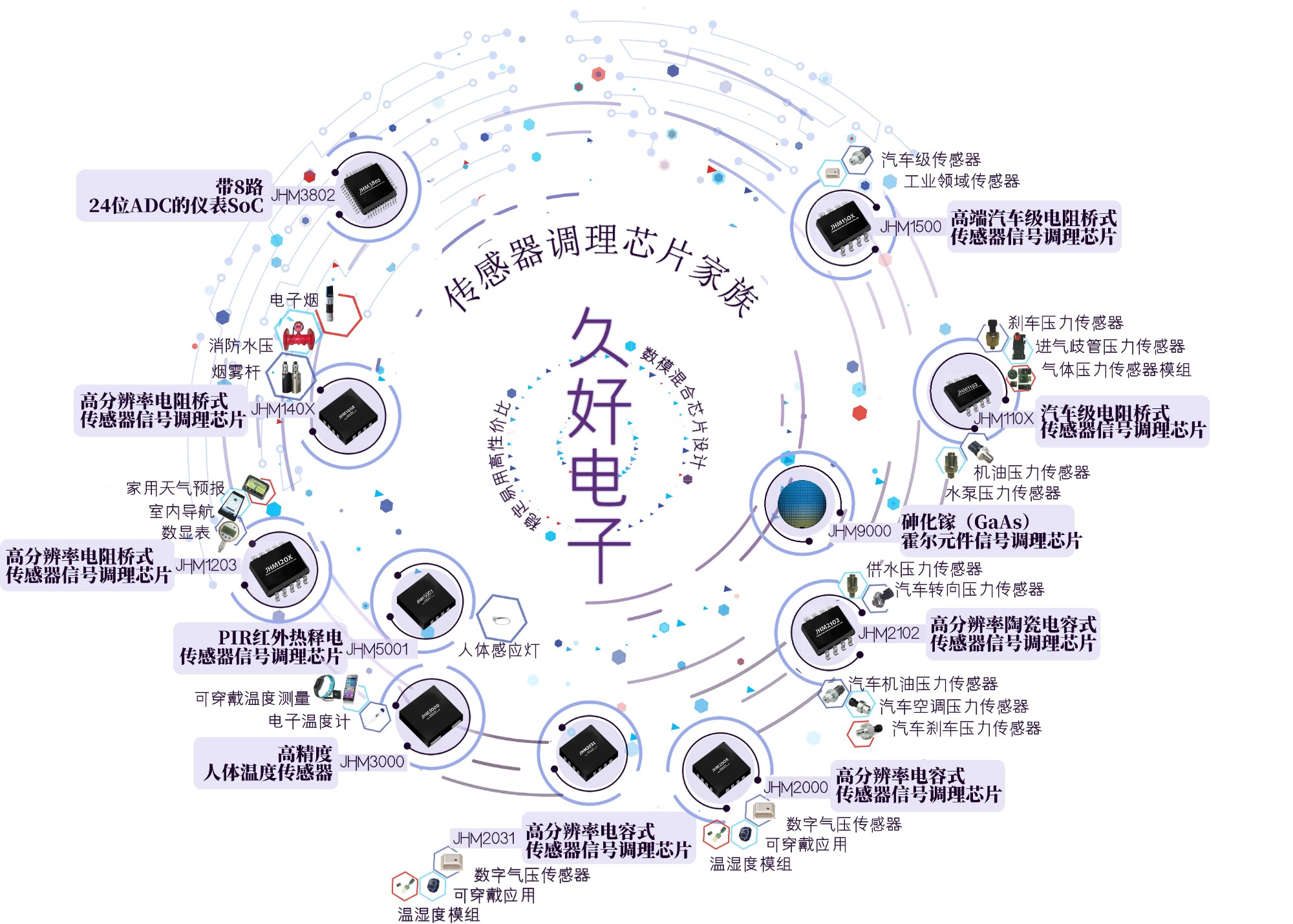 • 砷化鎵(GaAs)霍爾元件信號調理芯片JHM9000